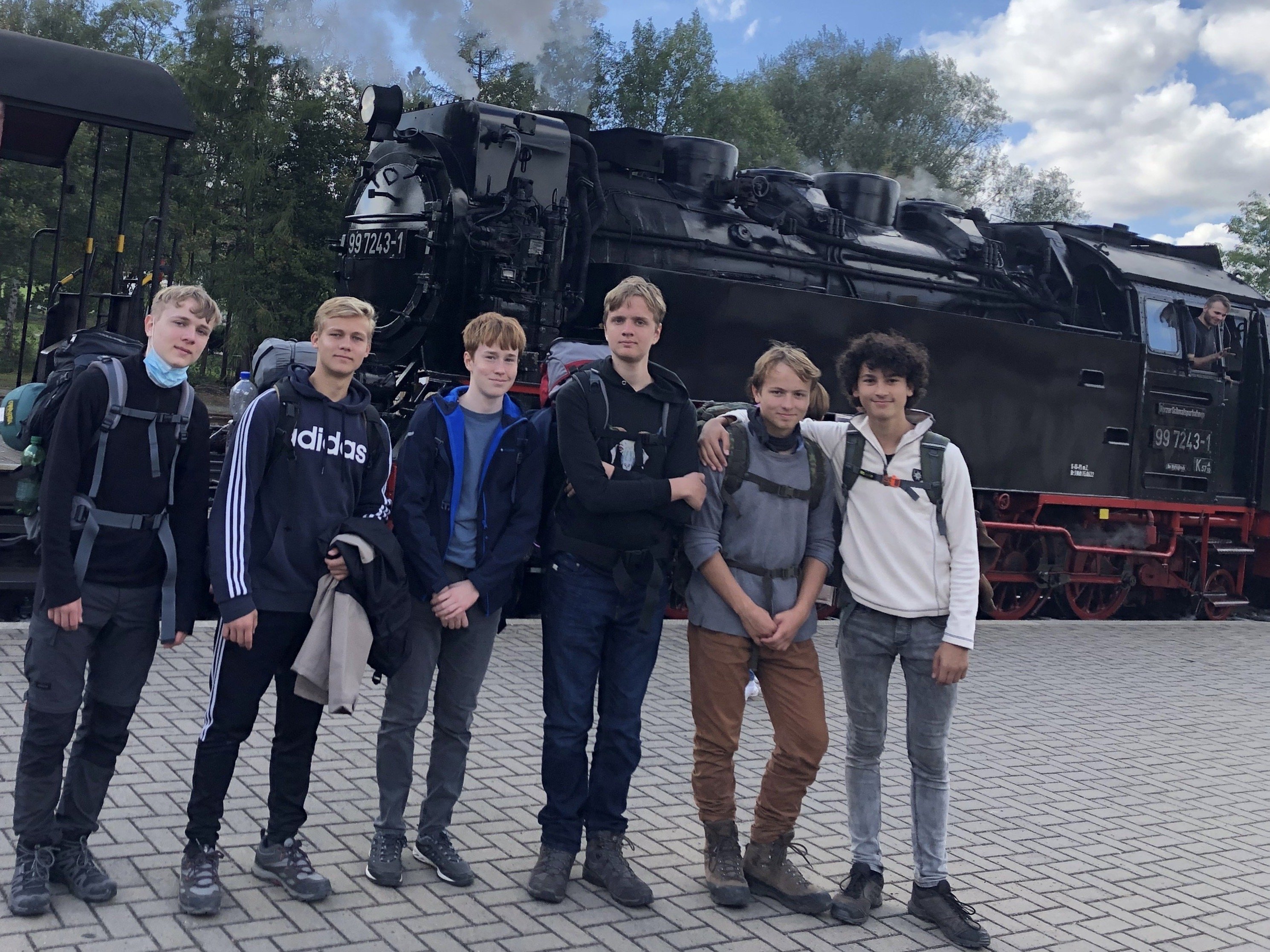 Sechs Jungen aus der Klasse 10 begaben sich am Montag, dem 19. September, für drei Tage auf den Jakobusweg in Sachsen-Anhalt. Nach einer zweieinhalbstündigen Anreise mit ÖPNV ging es um 10:30 Uhr in der St.-Vitus-Kirche in Kloster Gröningen, einer über 1000 Jahre alten Kirche auf dem historischen Jakobsweg, los. Alle Teilnehmer erhielten ihren Pilgerausweis und eine Jakobsmuschel sowie zehn Kaffeebohnen: Für jedes besondere Erlebnis auf dem Weg sollte je eine Bohne von der linken in die rechte Hosentasche wandern …