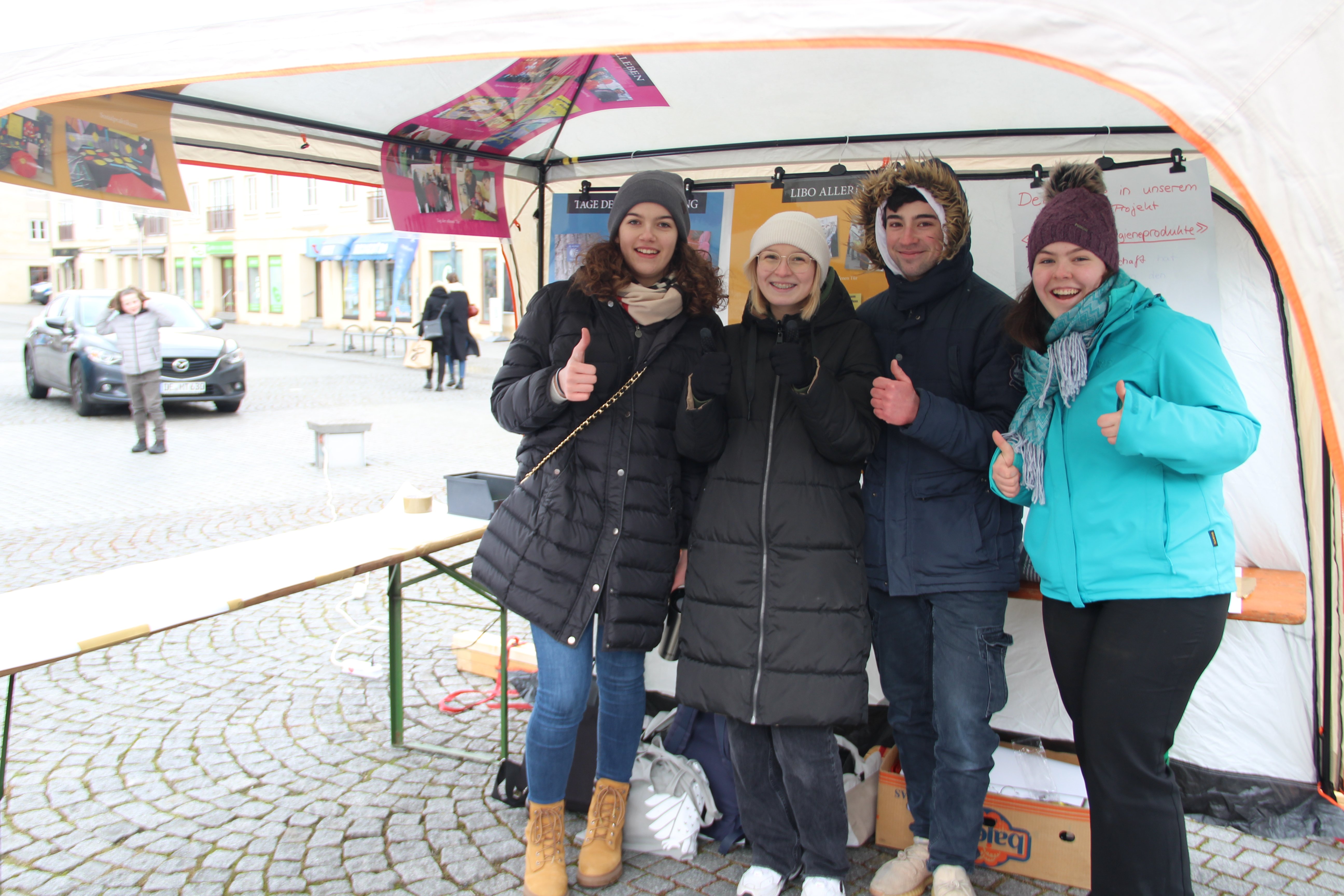 Als Teil der bunten Meile präsentierte unsere SV zwischen 11 und 14 Uhr eigene Demokratie-Projekte und lud zum Mitmachen ein. Auch wenn der Wind unsere große weiße Jurte aus dem Rennen warf, gab es manchen Besuch am Stand und warmen Tee gegen den kalten Märzwind.