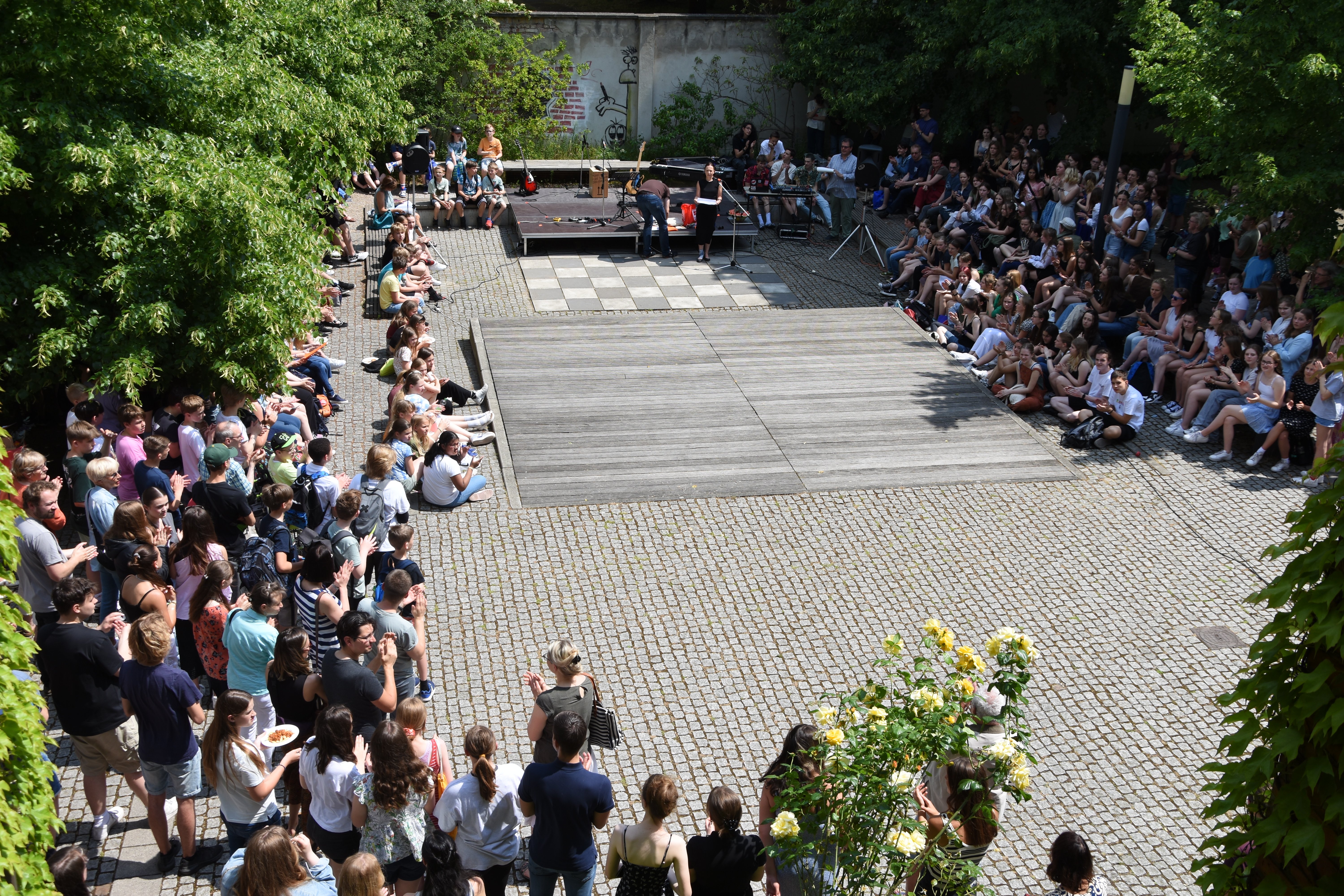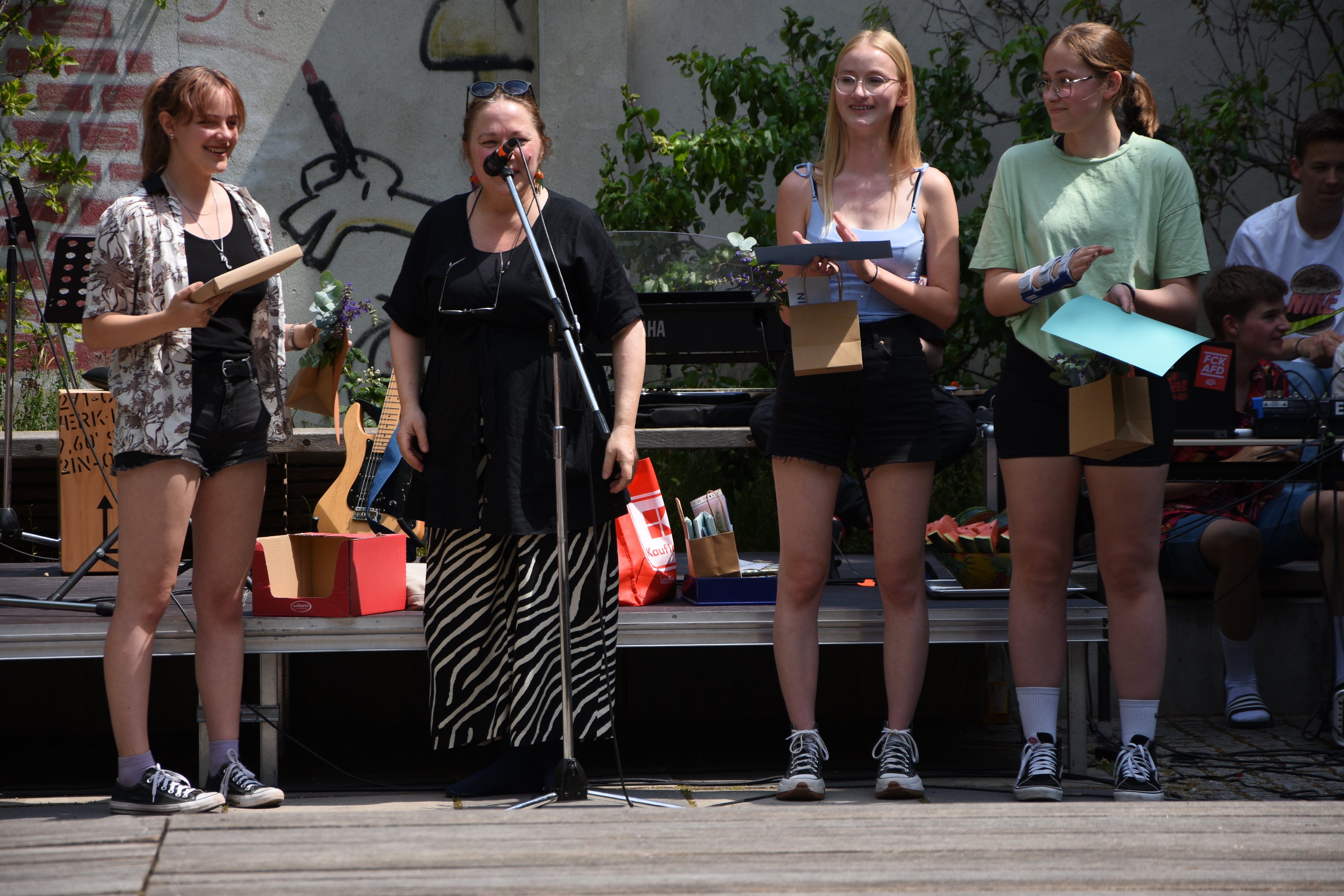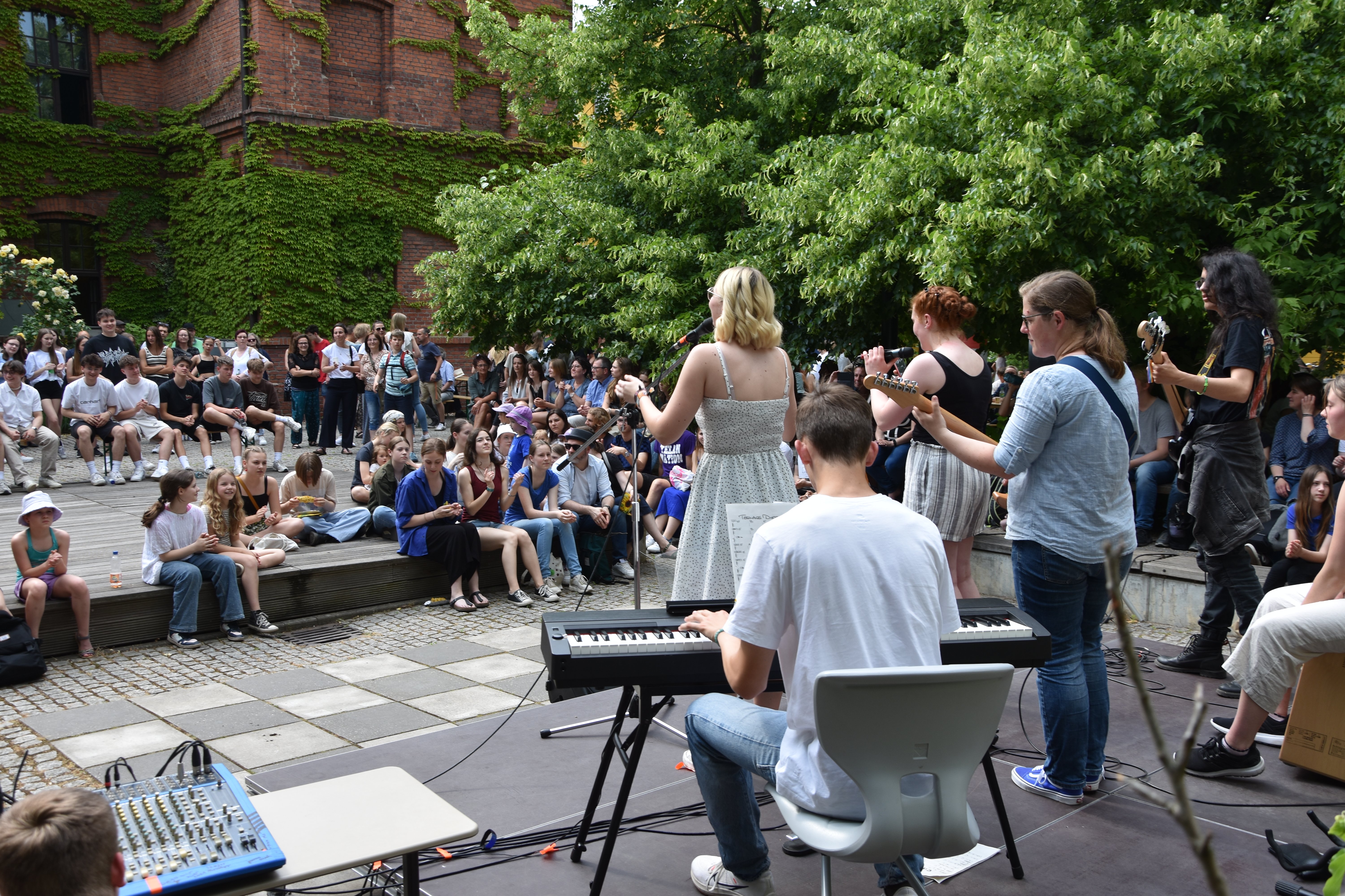 Das diesjährige Freie Lernen fand mit dem Präsentationstag am 09.06.2023 bei bestem Wetter seinen Höhepunkt. Zu Beginn fanden vielfältige Ehrungen durch unseren Schulleiter und verschiedene FachlehrerInnen statt, da viele Preise im Laufe des Schuljahres durch unsere SchülerInnen erreicht wurden. Den Schlusspunkt des Tages setzte unsere neuformierte Schulband. Dazwischen konnten die vielen gestalterischen Projekte, die unser Schulgebäude und das Schulgelände zieren, bestaunt werden. So wurden im vergangenen Schuljahr